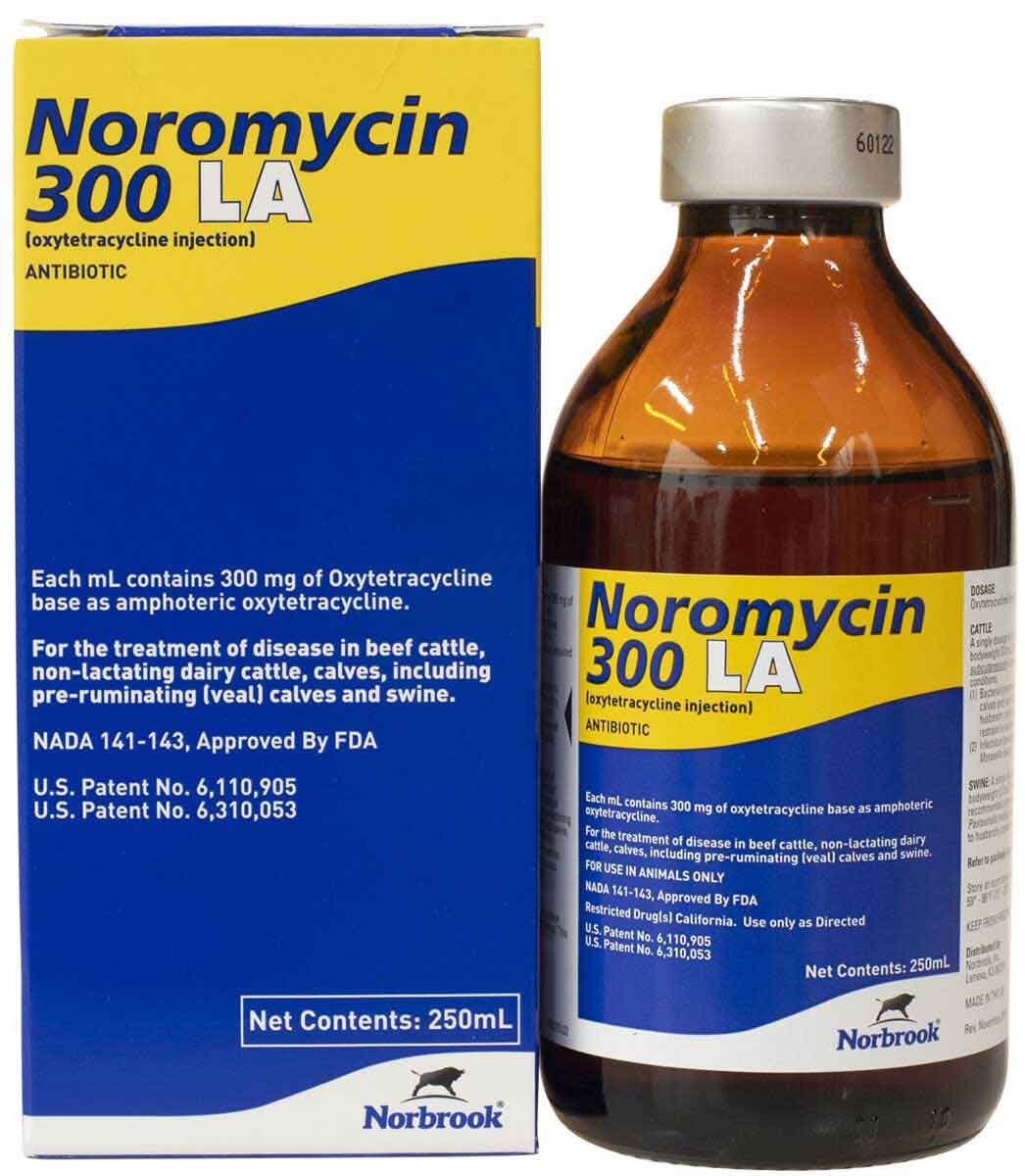 Buy Noromycin 300 LA Online. Noromycin 300 LA is a sterile, ready‑to‑use injectable solution containing oxytetracycline dihydrate (300 mg/mL). Manufactured by Norbrook Laboratories, it is FDA‑approved under NADA #141‑143 for use in beef cattle, non‑lactating dairy cattle, calves (including veal calves), and swine.